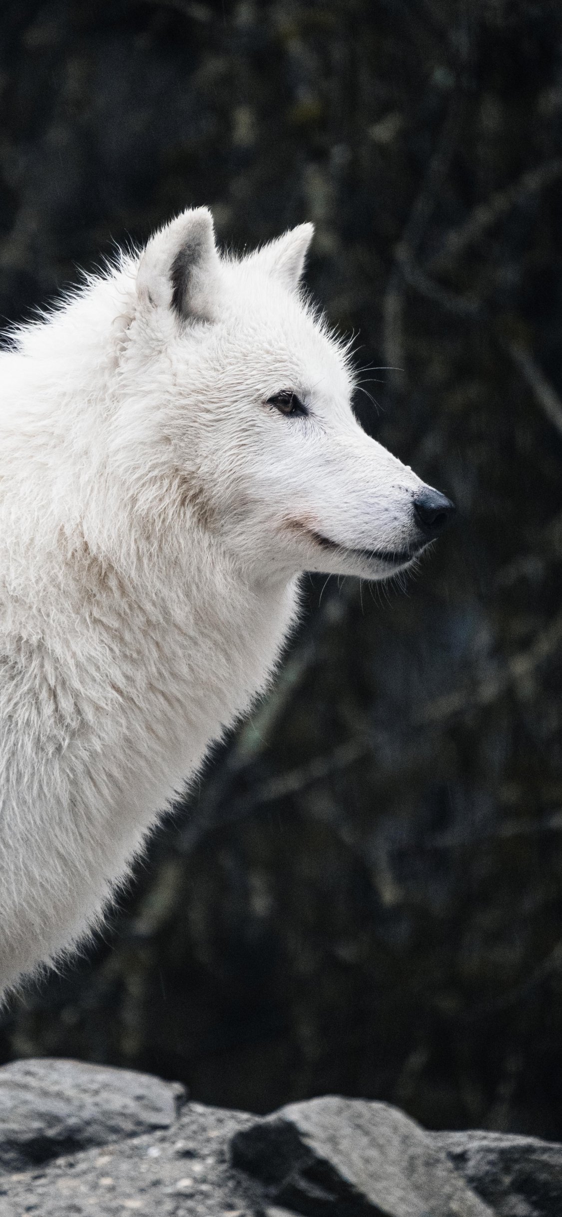 Wallpaper: white wolf, predator, wild nature - 1125x2436