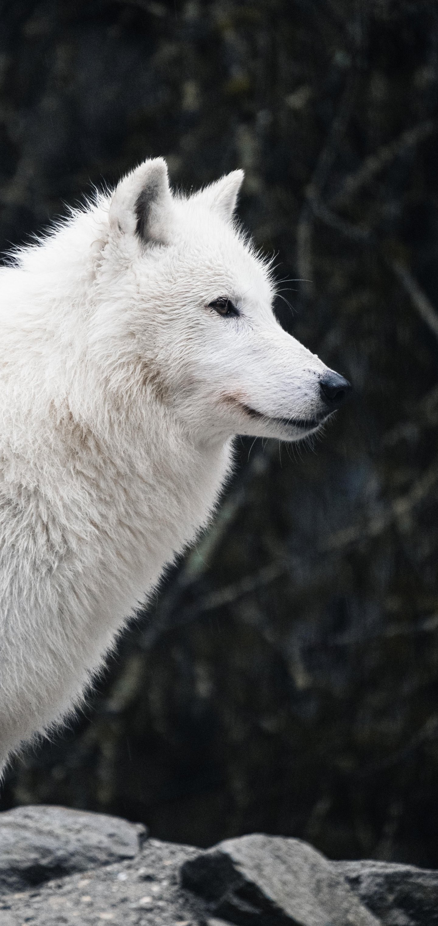 Wallpaper: white wolf, predator, wild nature - 1440x3040