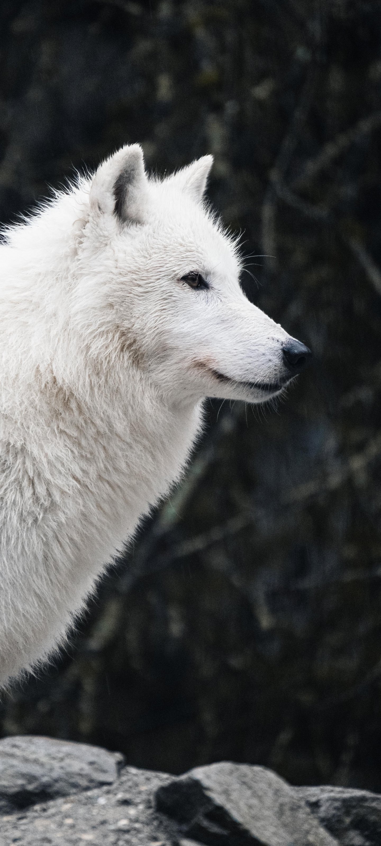 Wallpaper: white wolf, predator, wild nature - 1440x3200