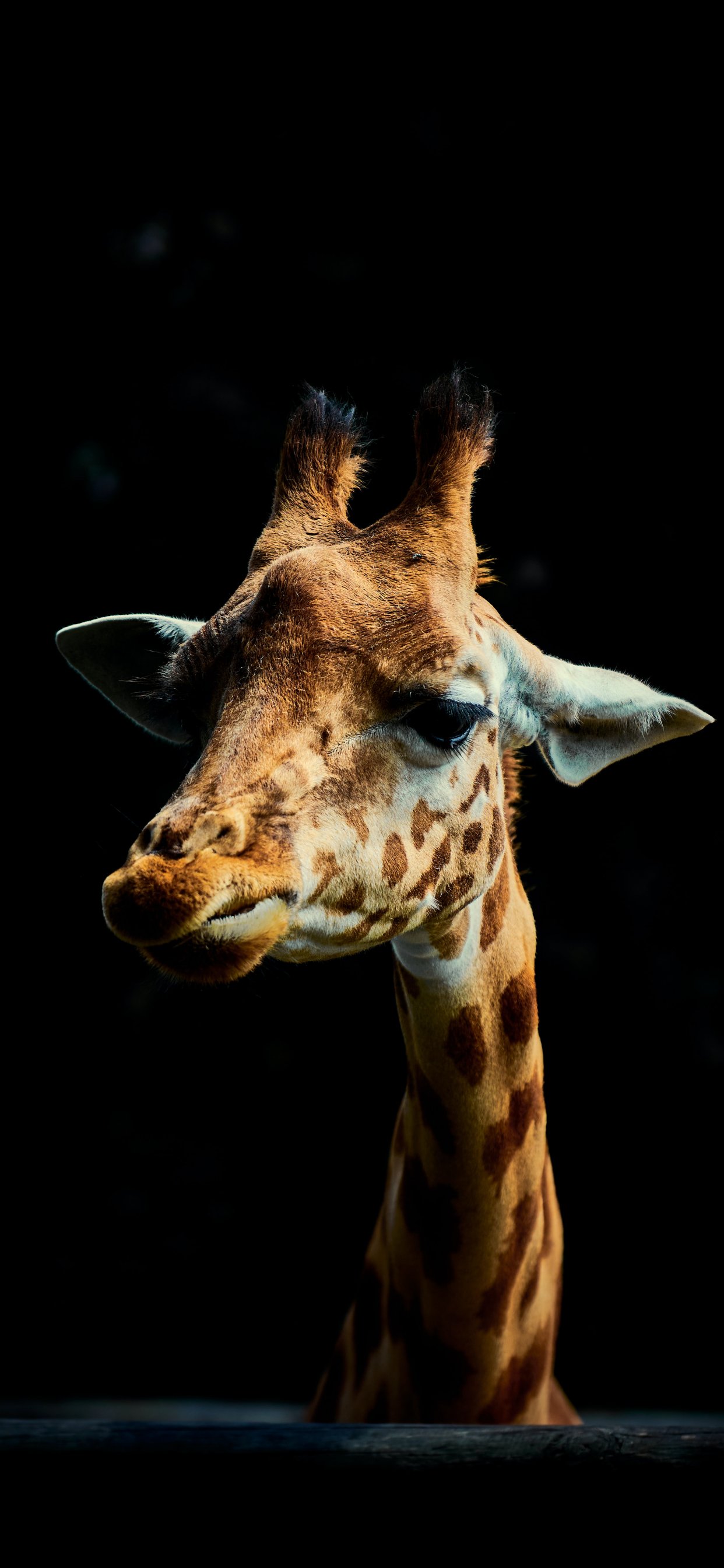Wallpaper: giraffe, on black background, wild nature - 1242x2688