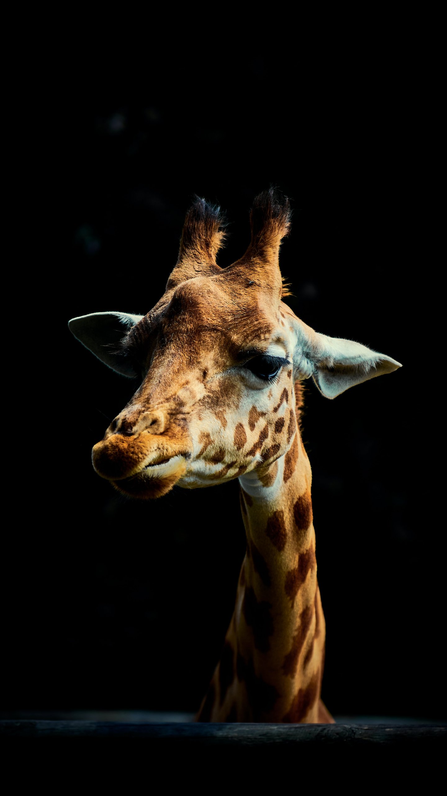 Wallpaper: giraffe, on black background, wild nature - 1440x2560