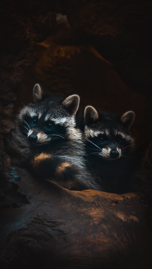 Wallpaper: raccoons, mammal, wild nature - 640x1136