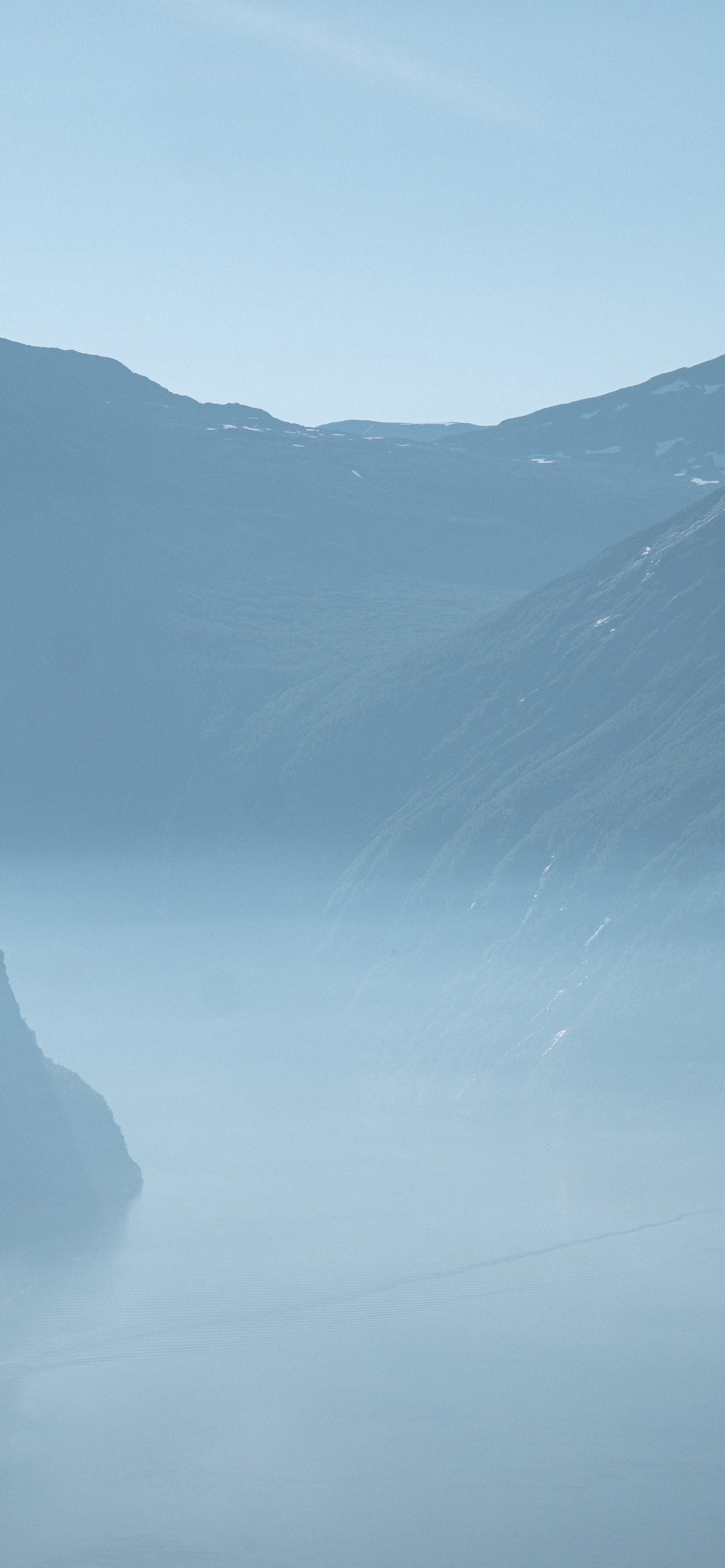 Wallpaper: mountain landscape, fog, blue - 1242x2688