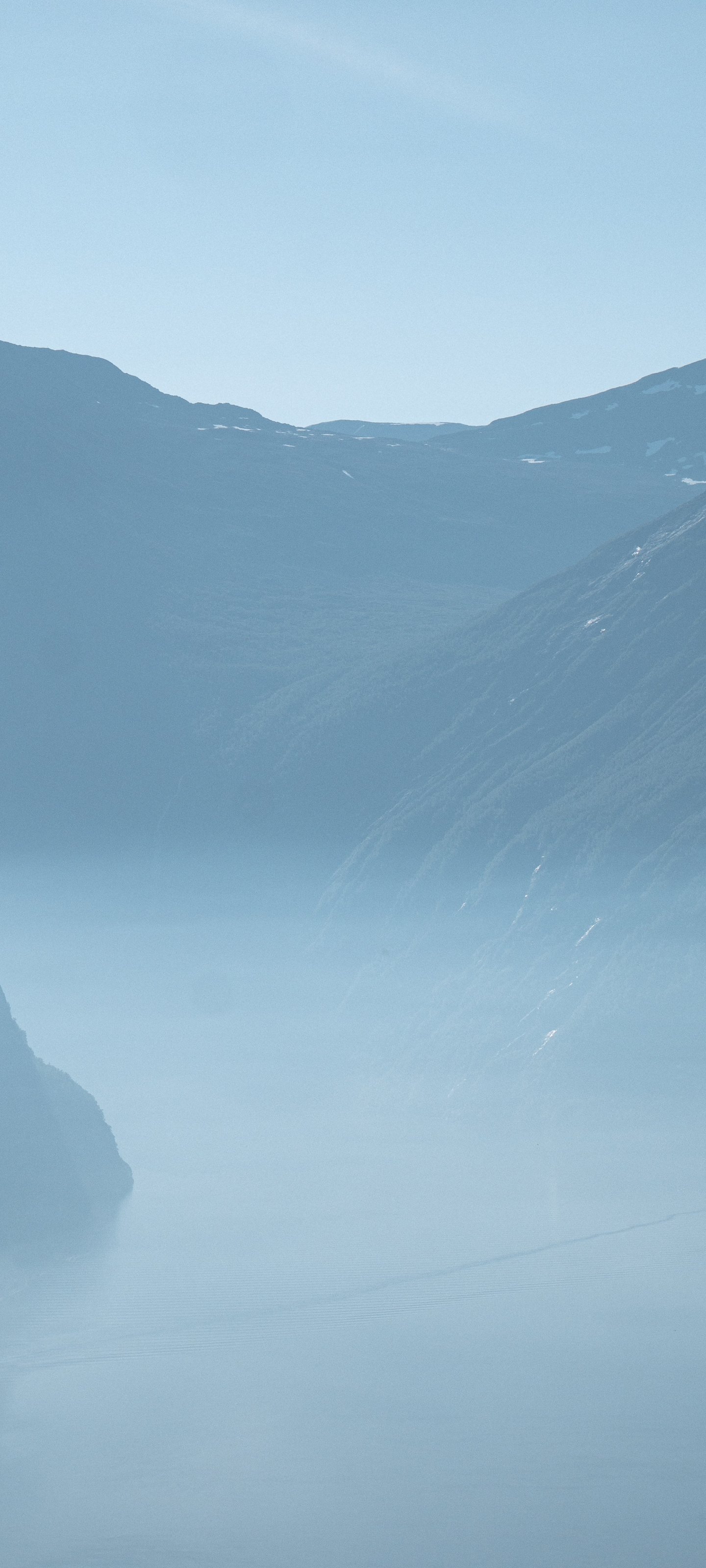 Wallpaper: mountain landscape, fog, blue - 1440x3200