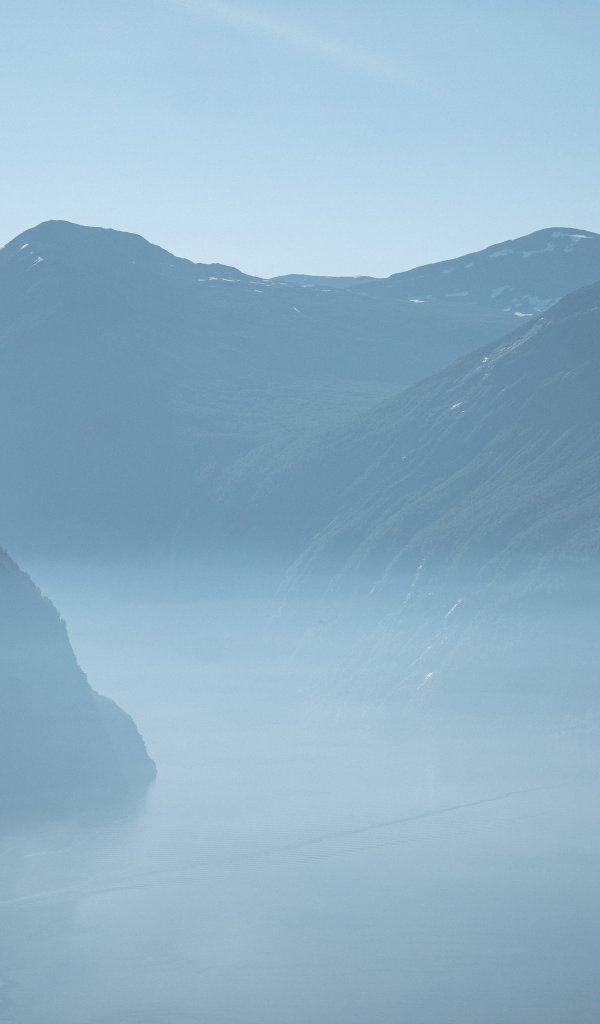 Wallpaper: mountain landscape, fog, blue - 600x1024
