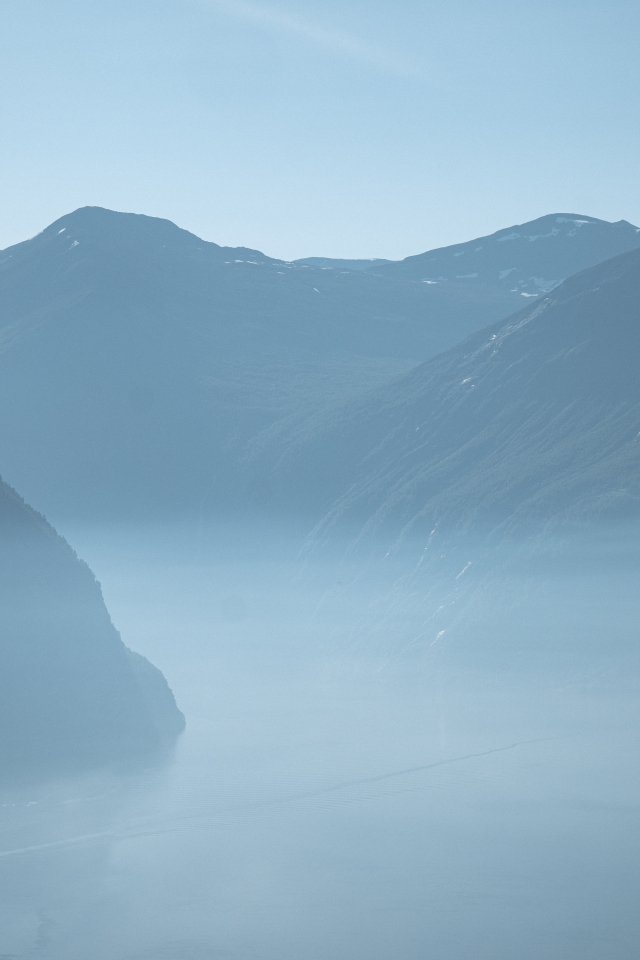 Wallpaper: mountain landscape, fog, blue - 640x960