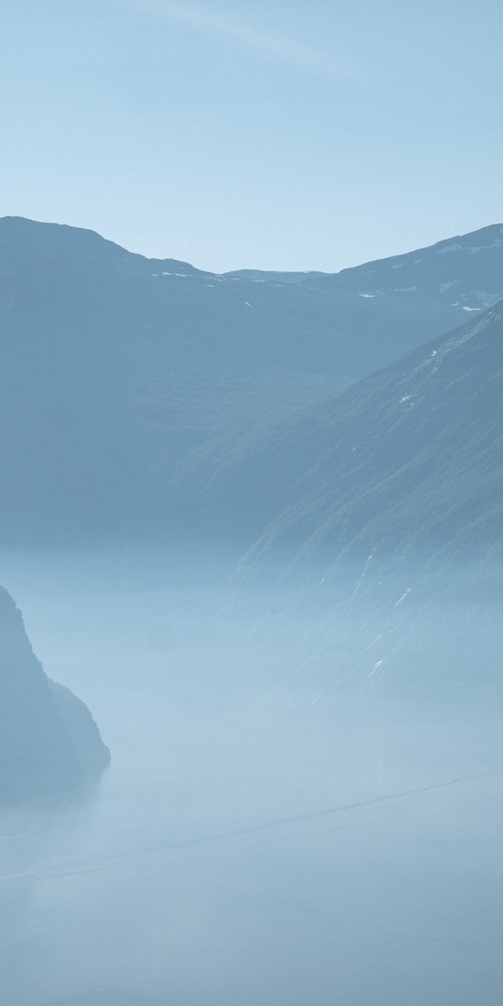 Wallpaper: mountain landscape, fog, blue - 720x1440