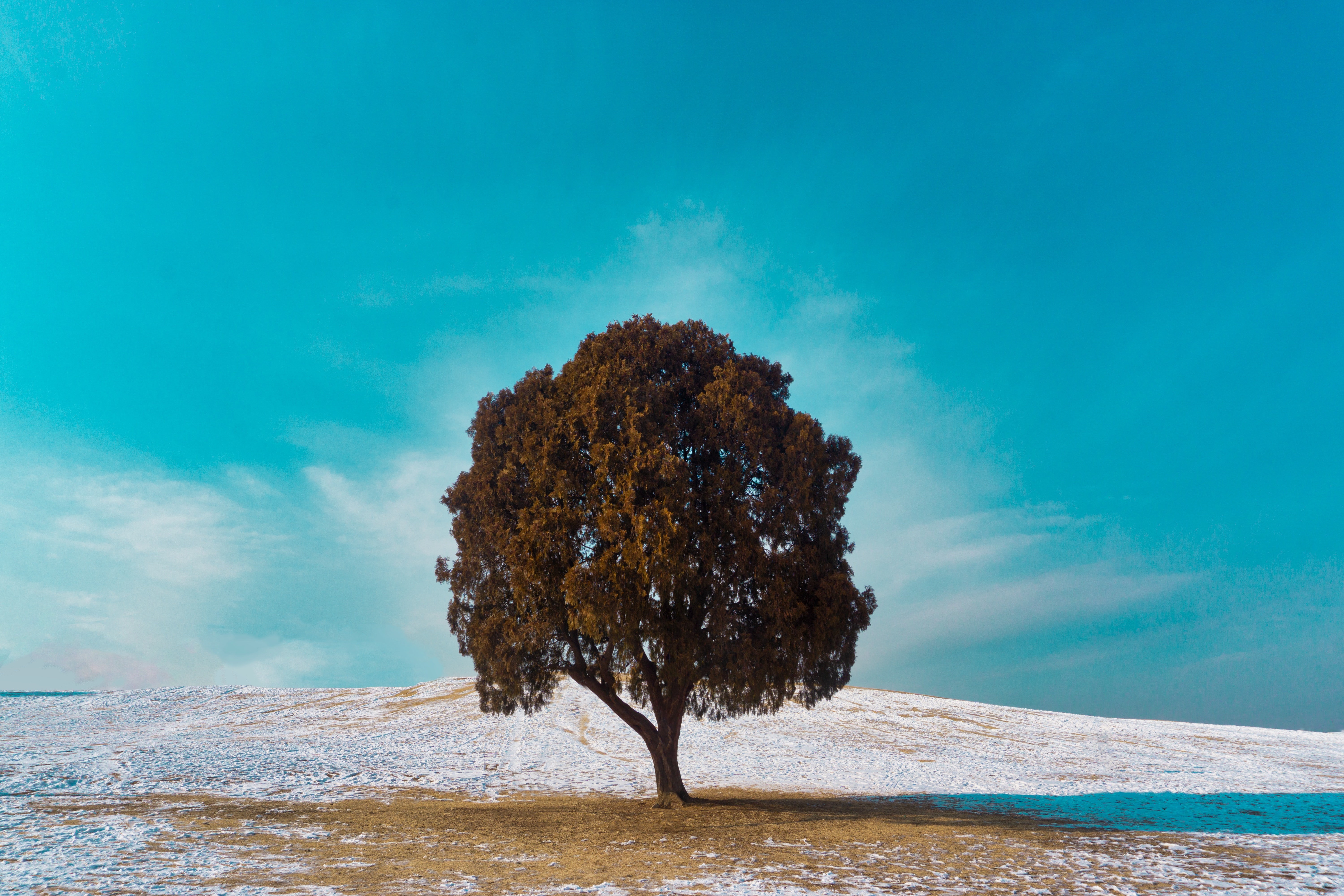Wallpaper: lonely tree, dub, landscape - 6000x4000