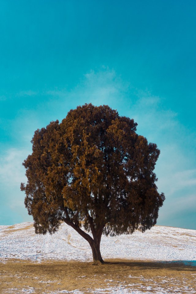 Wallpaper: lonely tree, dub, landscape - 640x960