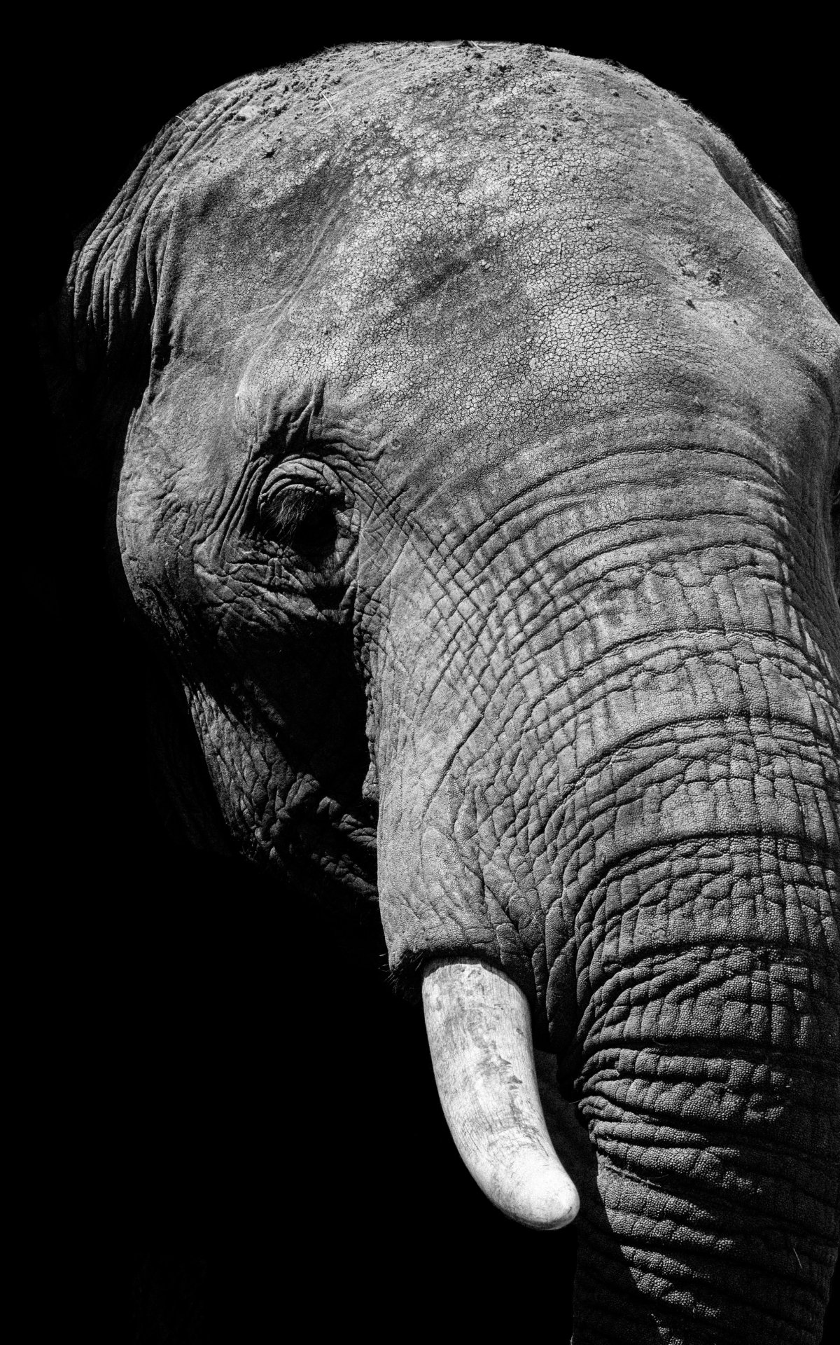 Wallpaper: elephant, black and white, tusks - 1200x1920