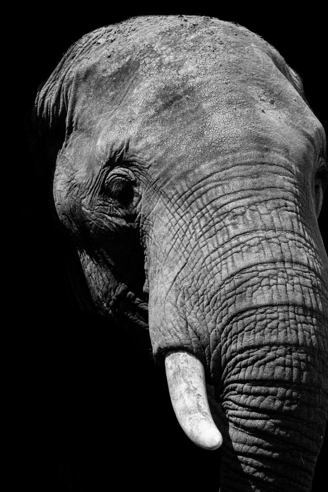 Wallpaper: elephant, black and white, tusks - 640x960