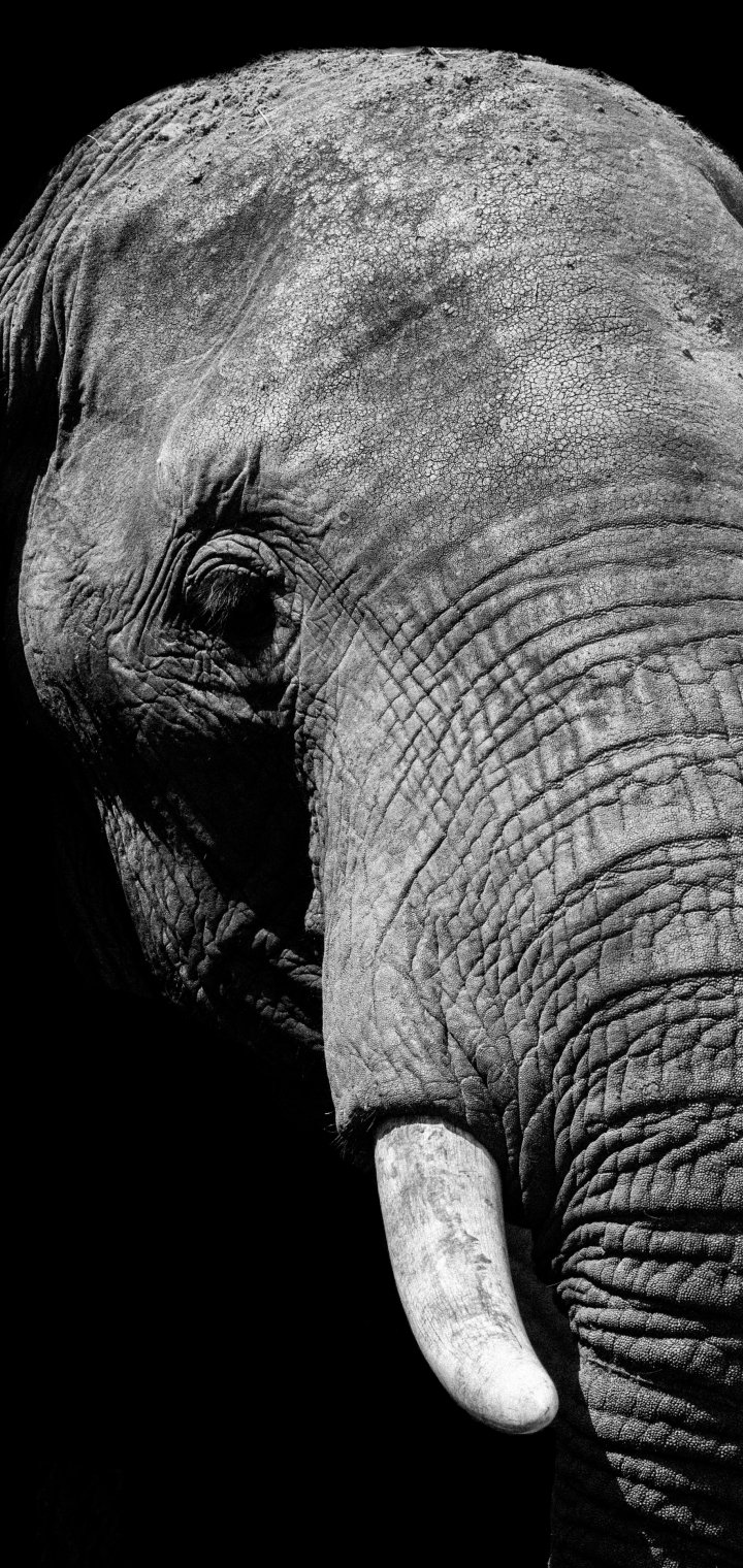 Wallpaper: elephant, black and white, tusks - 720x1520