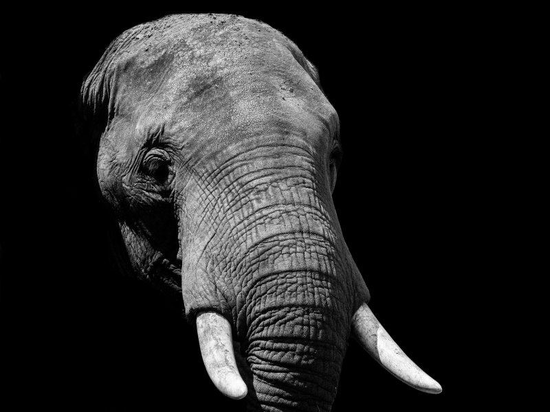 Wallpaper: elephant, black and white, tusks - 800x600