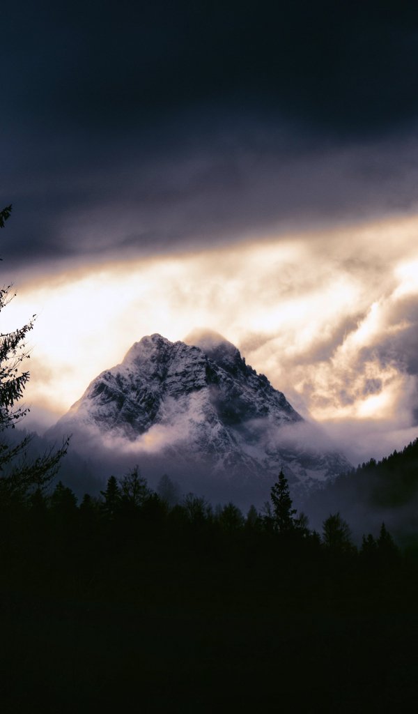 Wallpaper: mountain landscape, gloomy, night - 600x1024