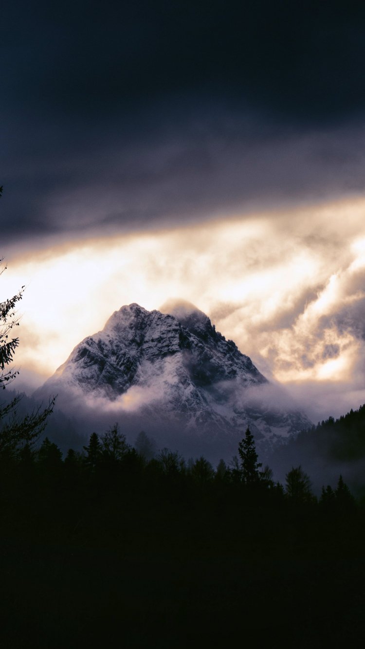 Wallpaper: mountain landscape, gloomy, night - 750x1334