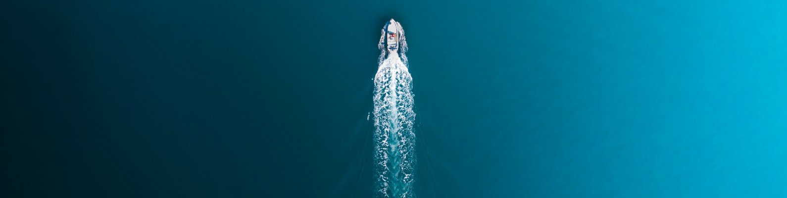 Wallpaper: blue sea, boat, top view - 1590x400