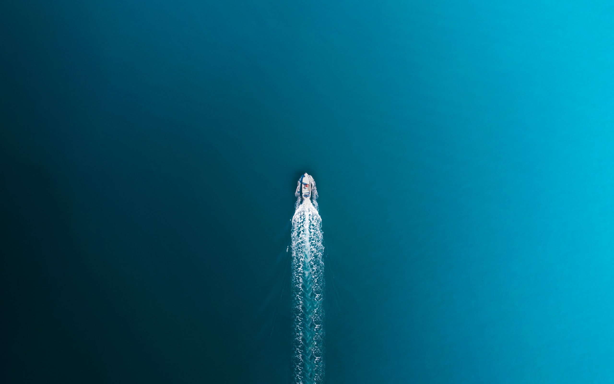 Wallpaper: blue sea, boat, top view - 2560x1600