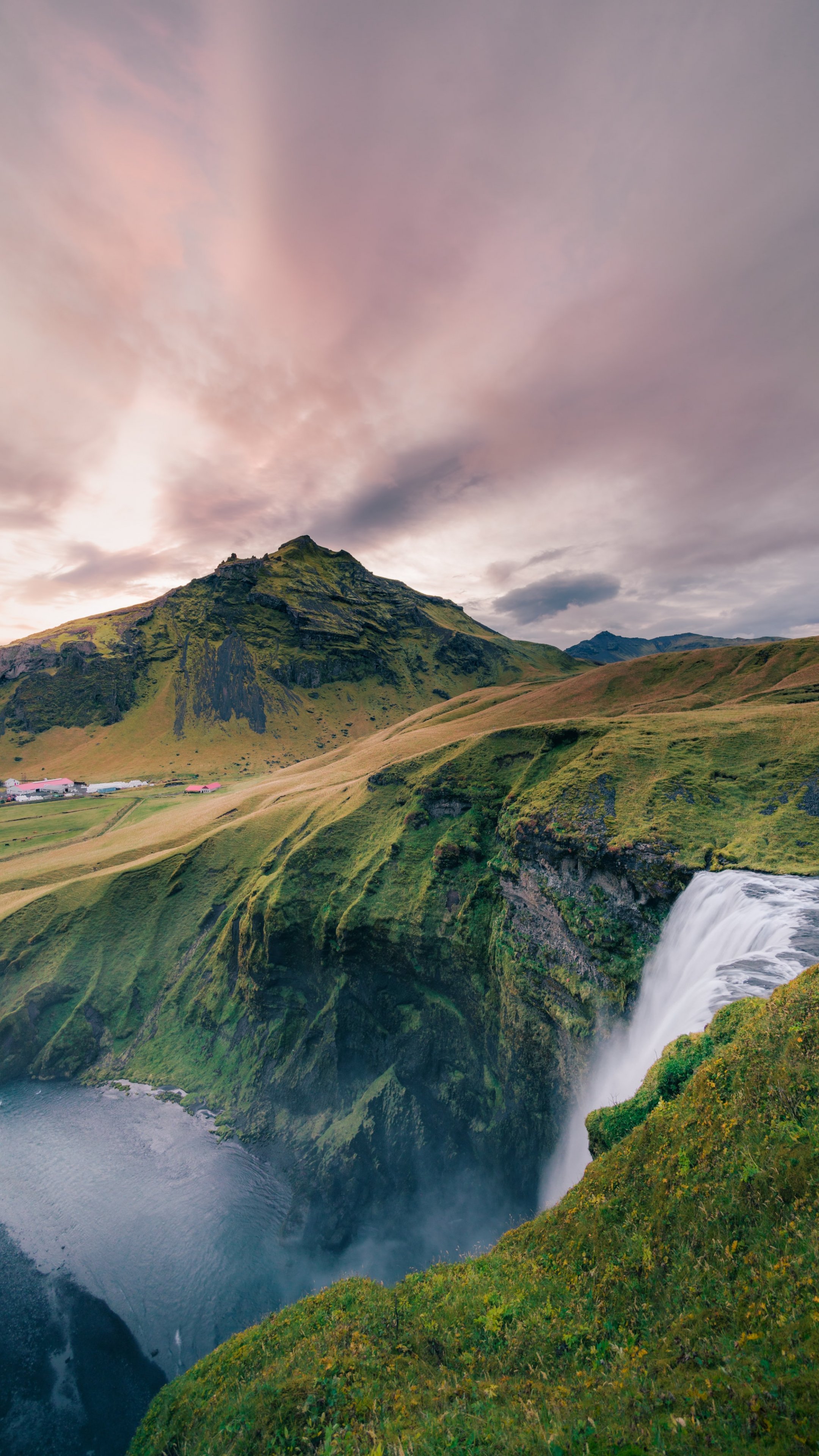 Wallpaper: mountain landscape, waterfall - 2160x3840