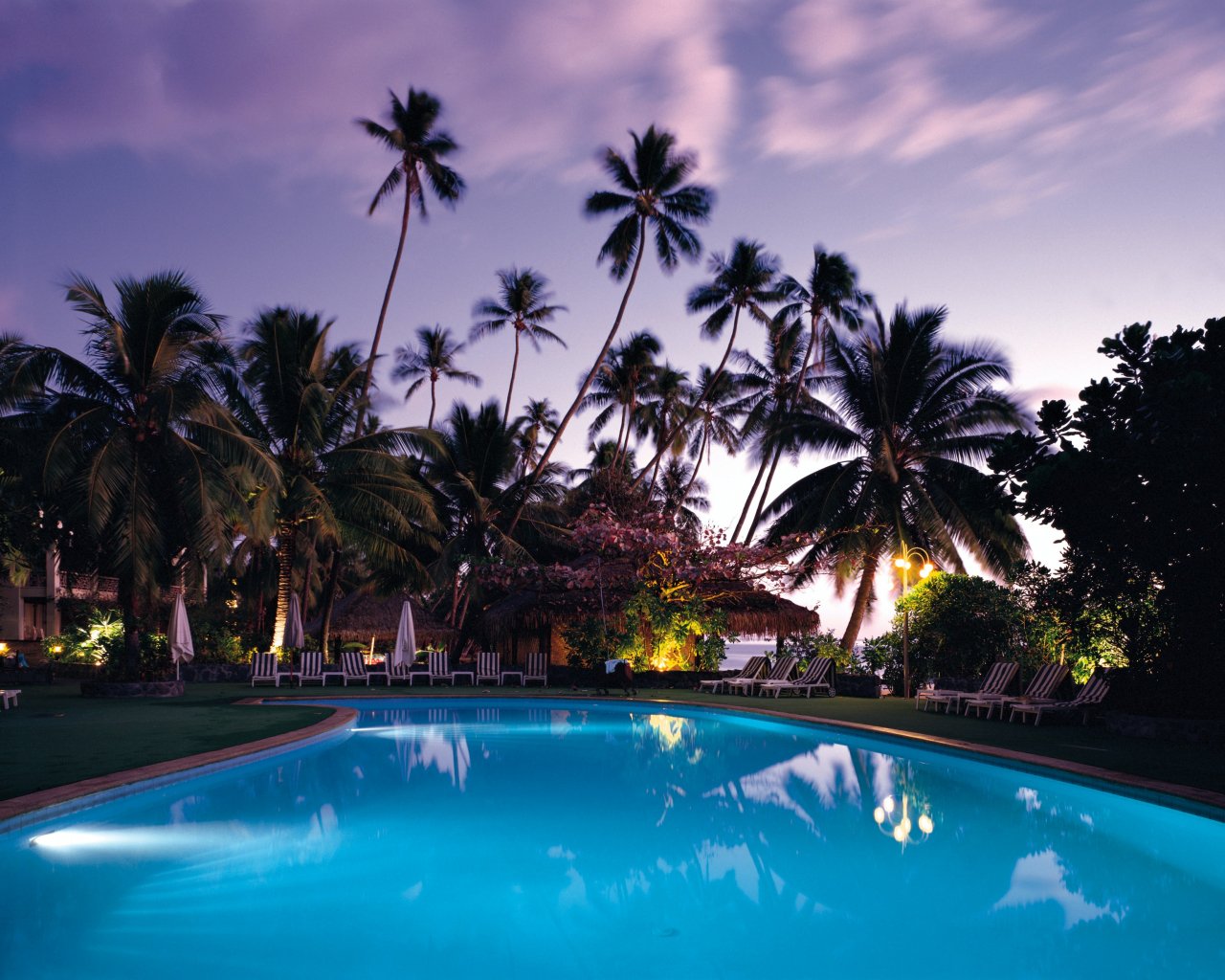 Wallpaper: swimming pool, palm trees, rest - 1280x1024