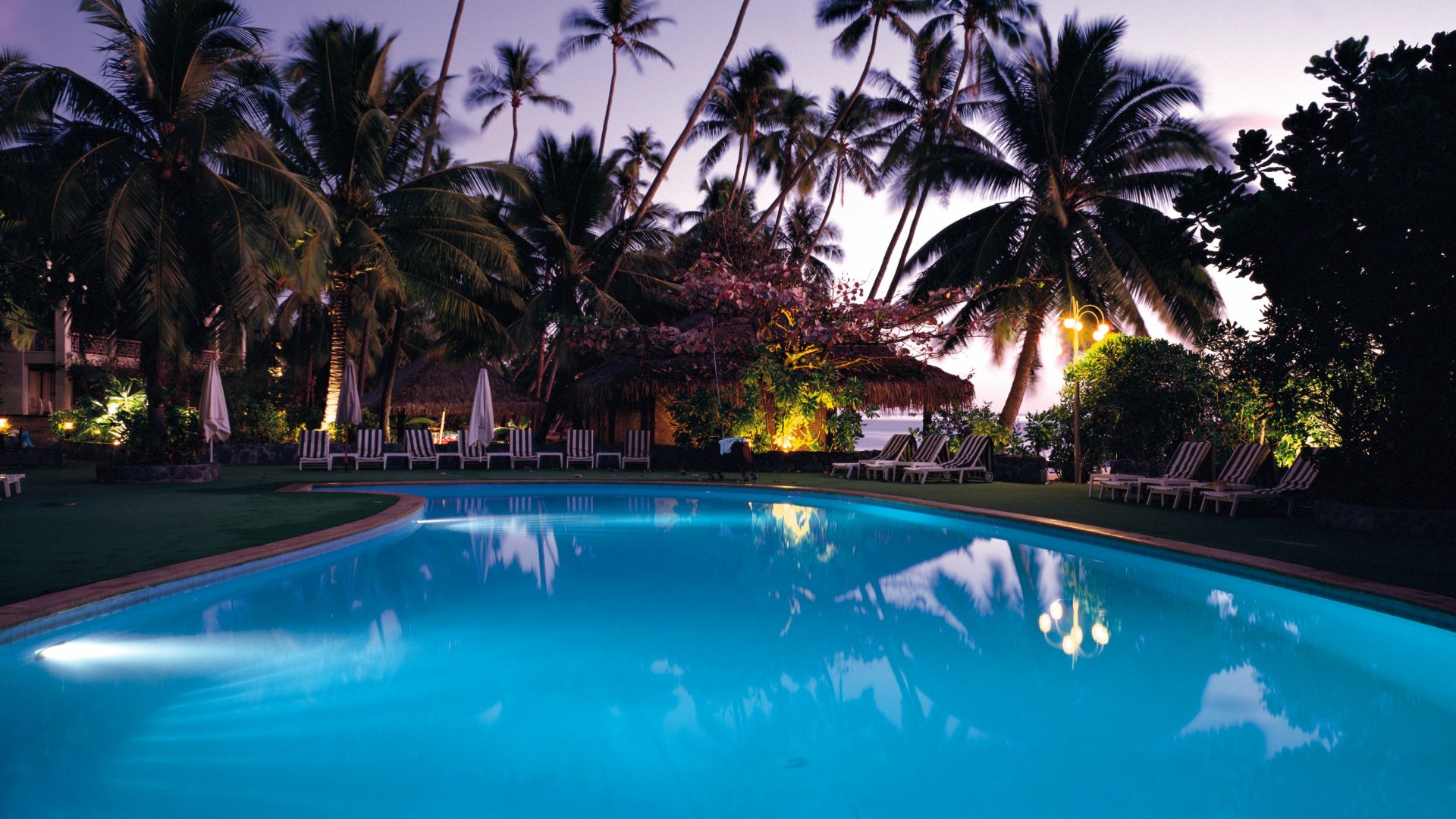 Wallpaper: swimming pool, palm trees, rest - 1920x1080
