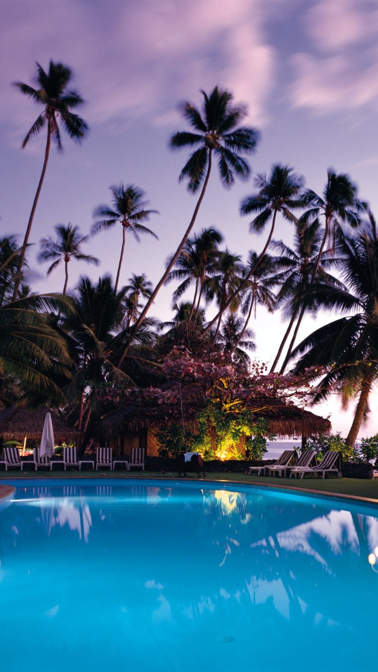 Wallpaper: swimming pool, palm trees, rest - 750x1334