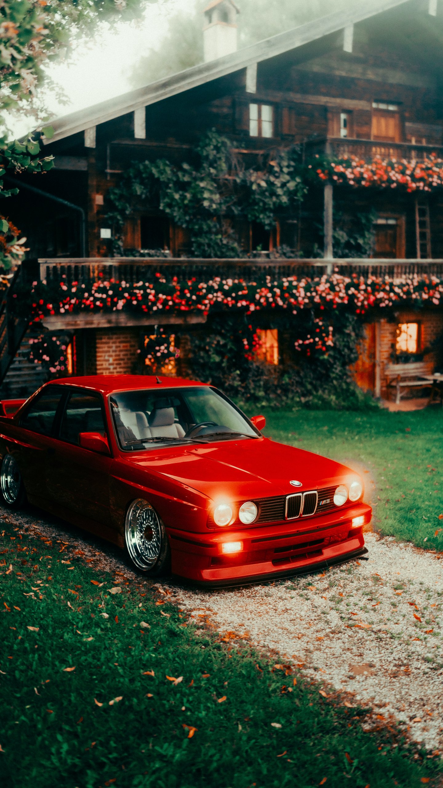 Wallpaper: red BMW E30, classic car - 1440x2560