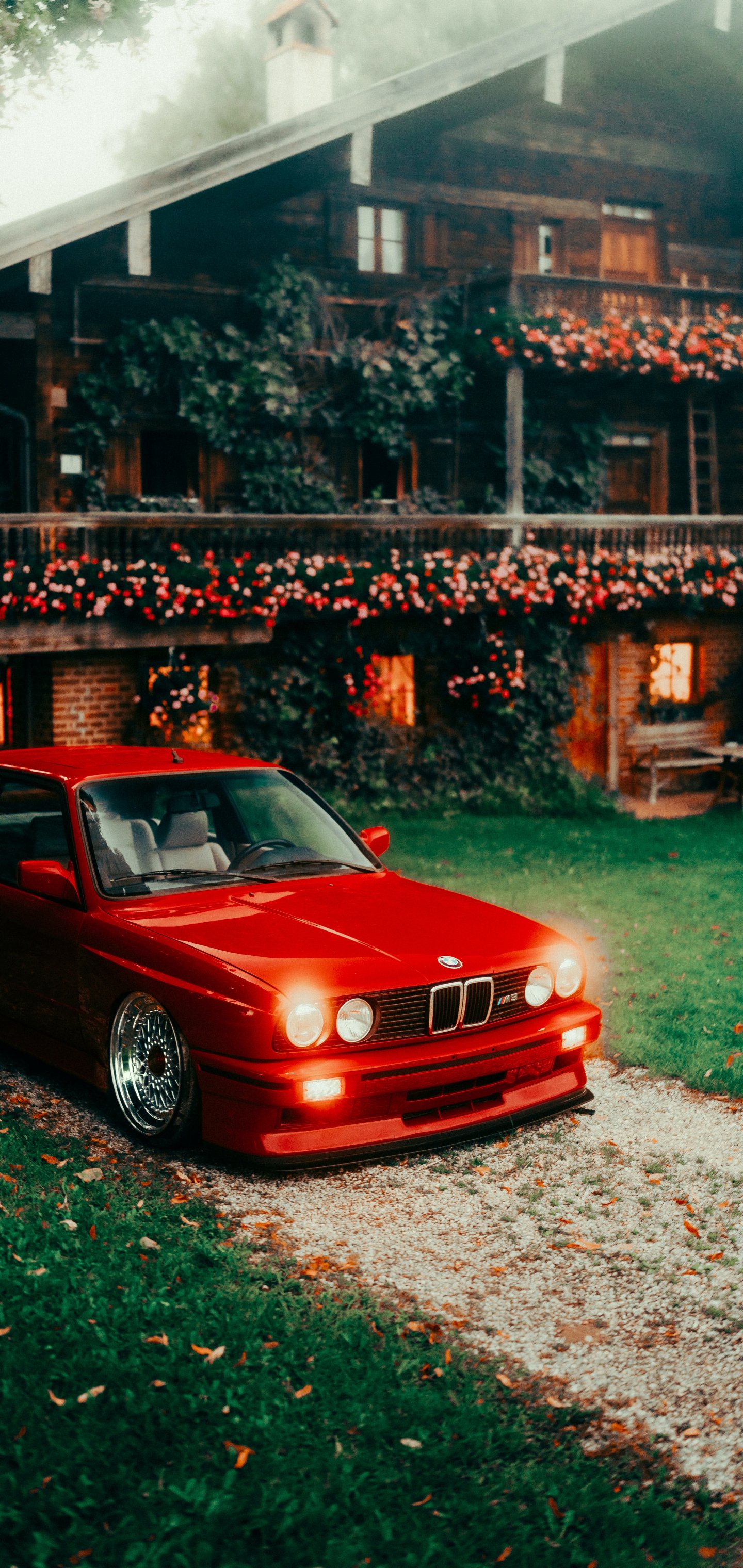 Wallpaper: red BMW E30, classic car - 1440x3040