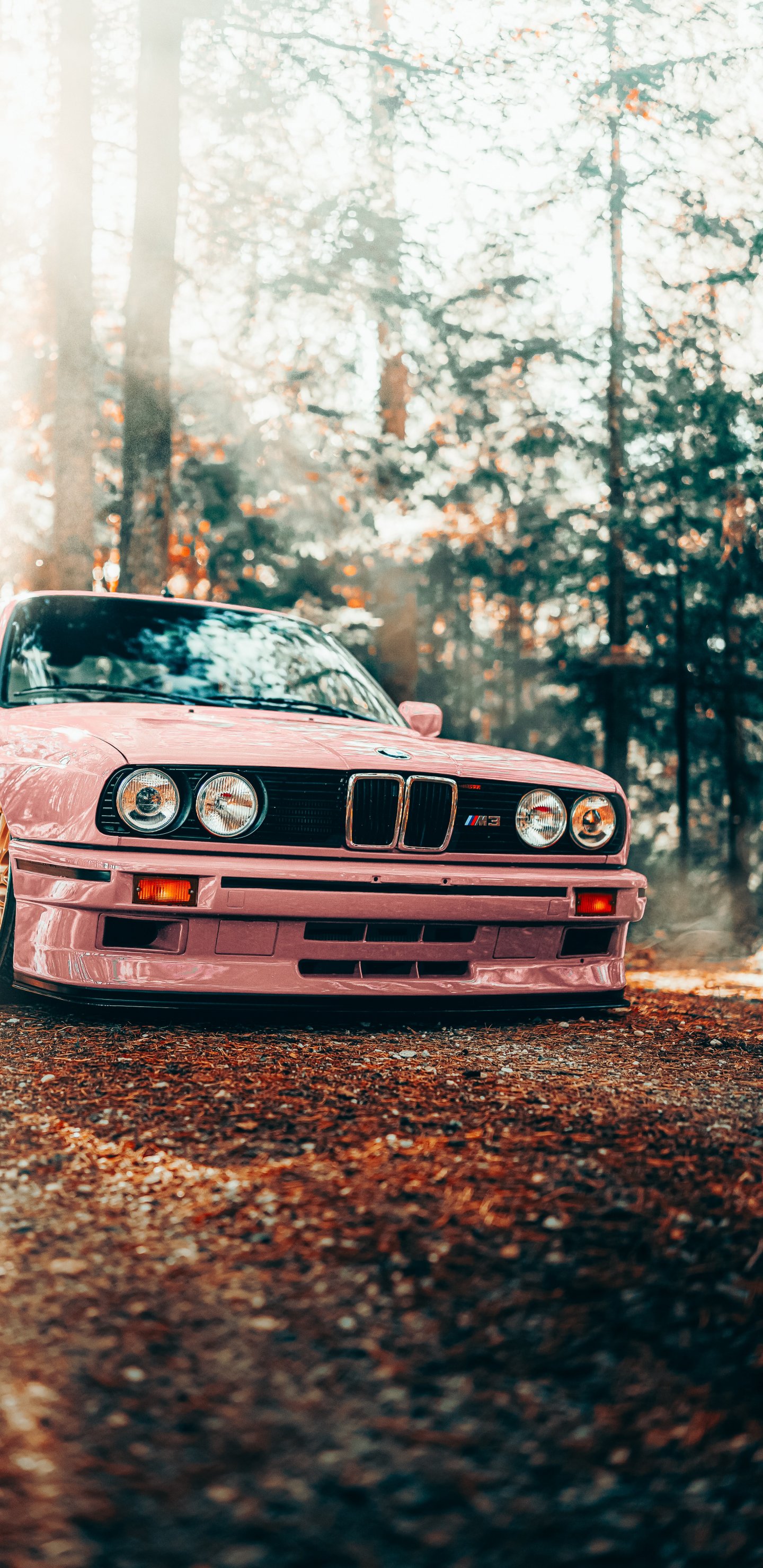 Wallpaper: pink BMW E30, classic car - 1440x2960