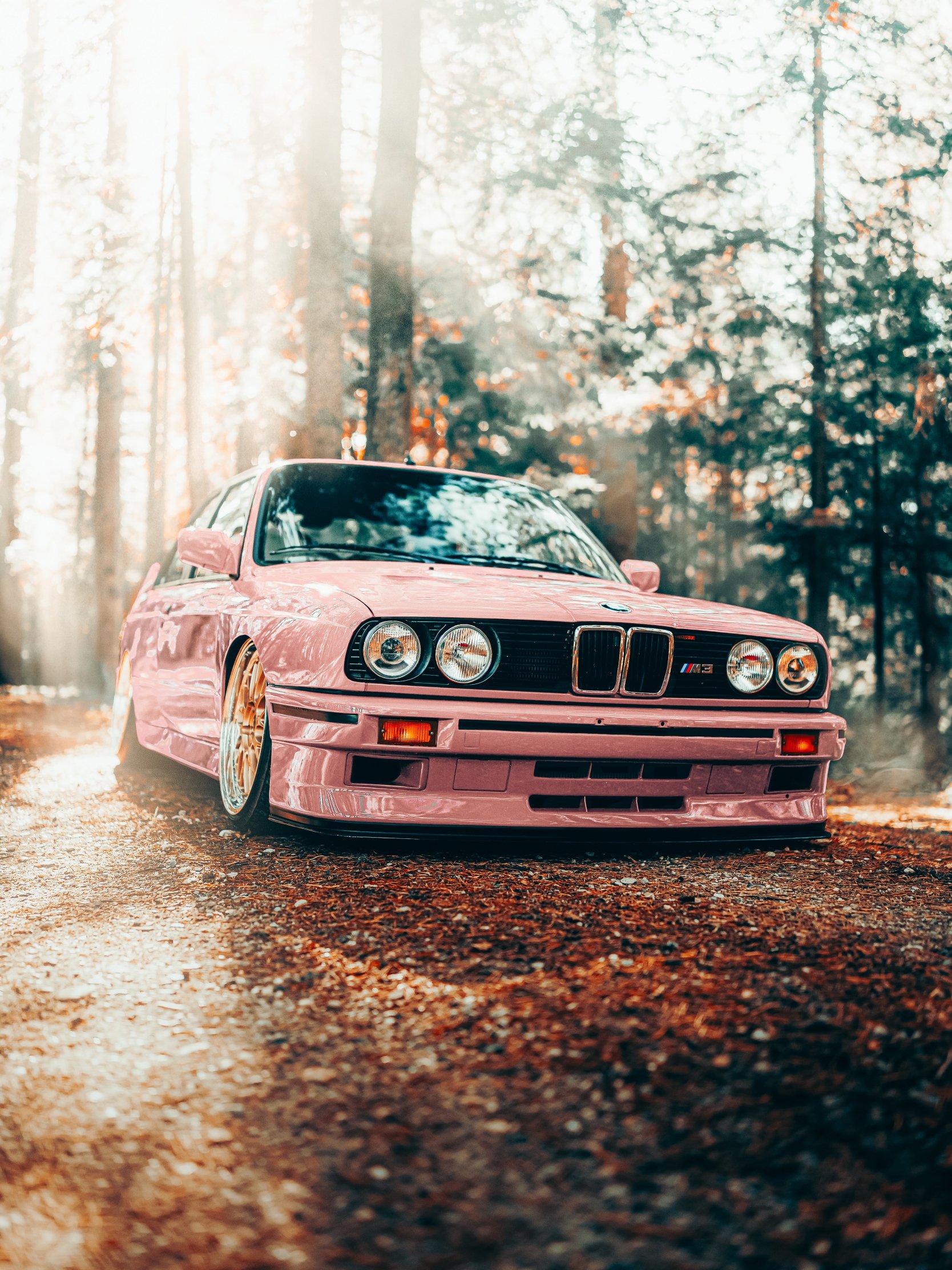 Wallpaper: pink BMW E30, classic car - 1668x2224