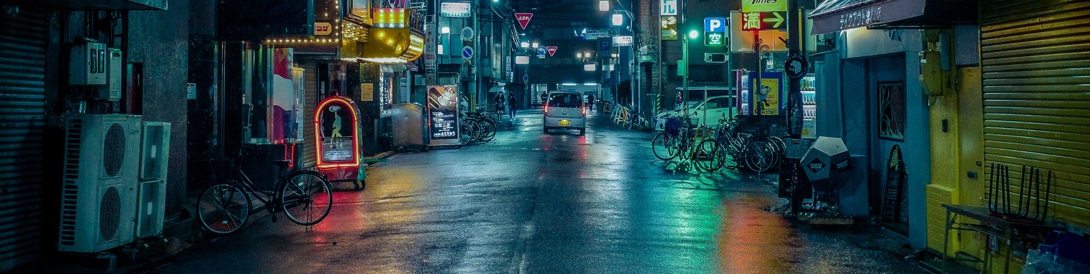 Wallpaper: night city, lane, Japan - 1590x400