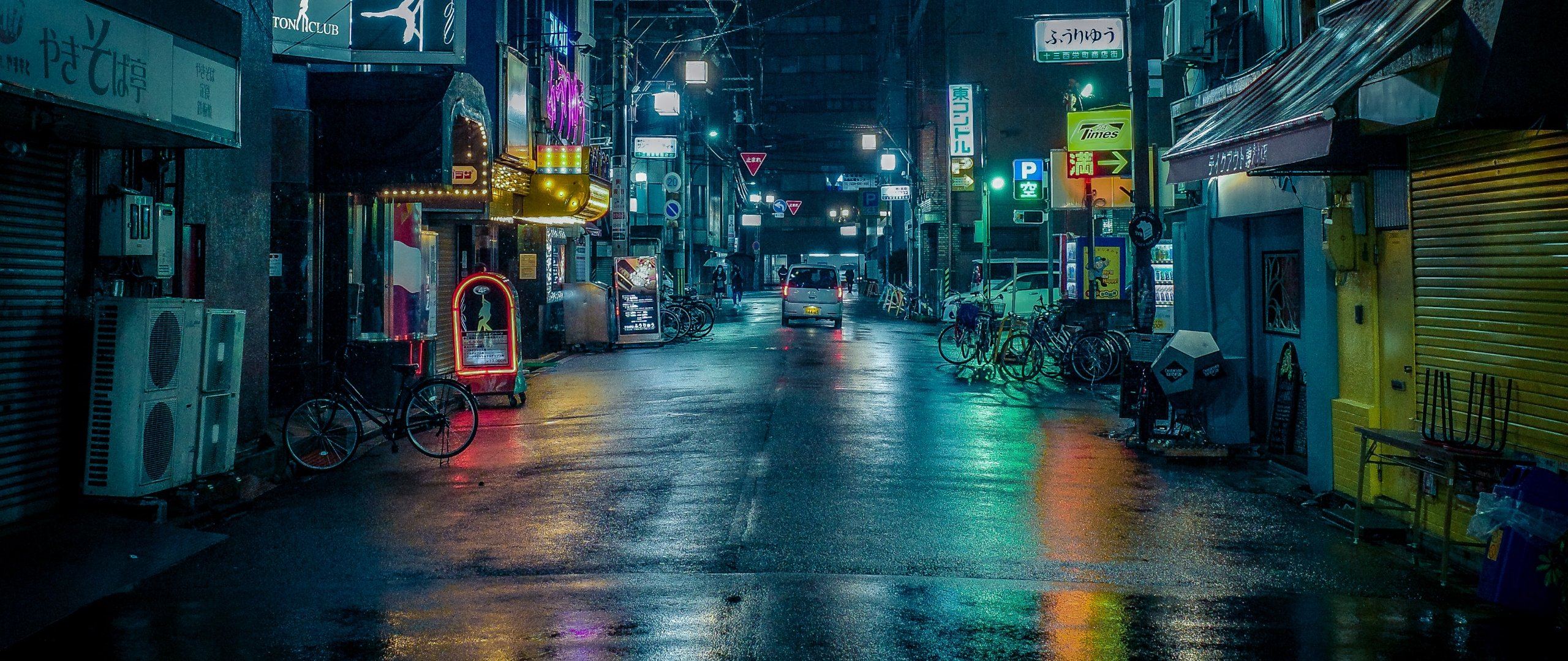 Wallpaper: night city, lane, Japan - 2560x1080