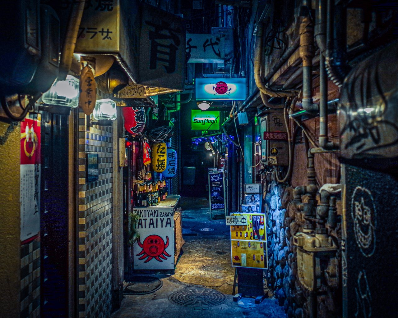Wallpaper: night city, lane, Japan - 1280x1024