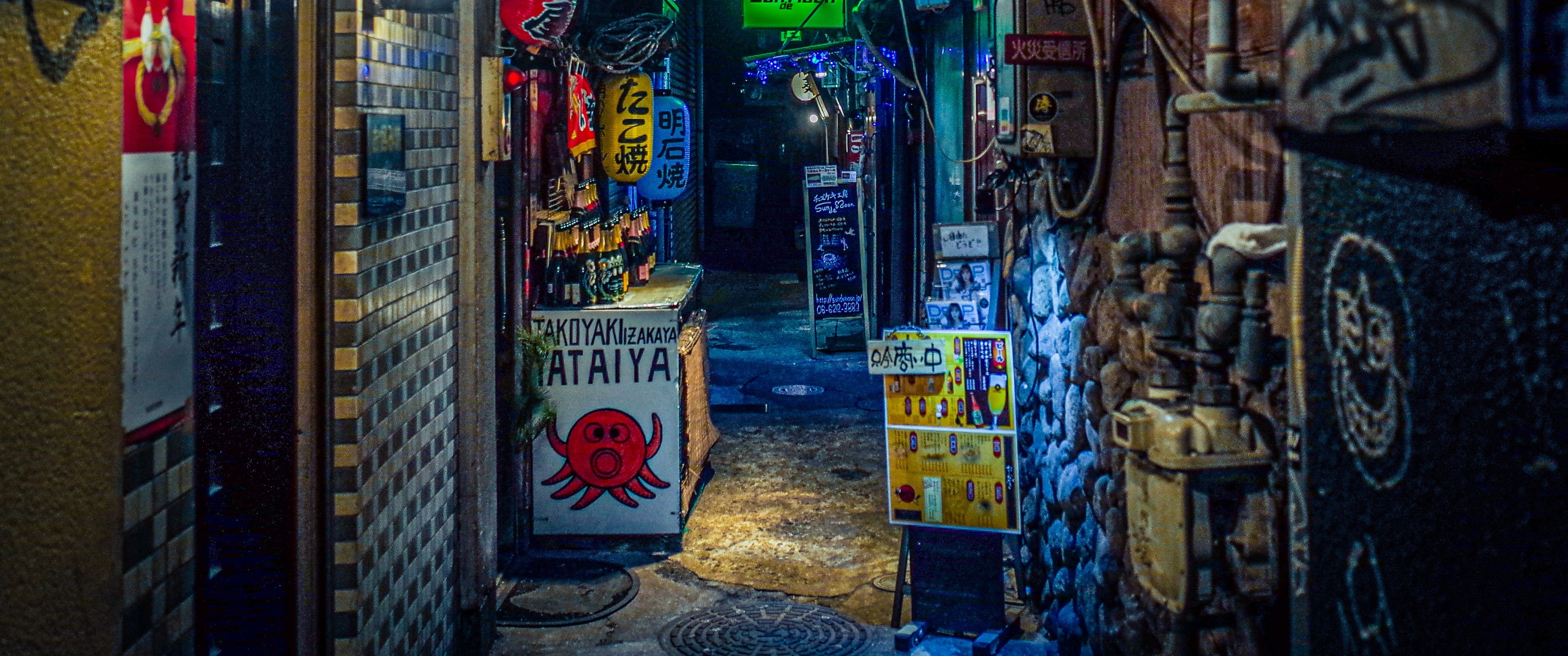 Wallpaper: night city, lane, Japan - 3440x1440