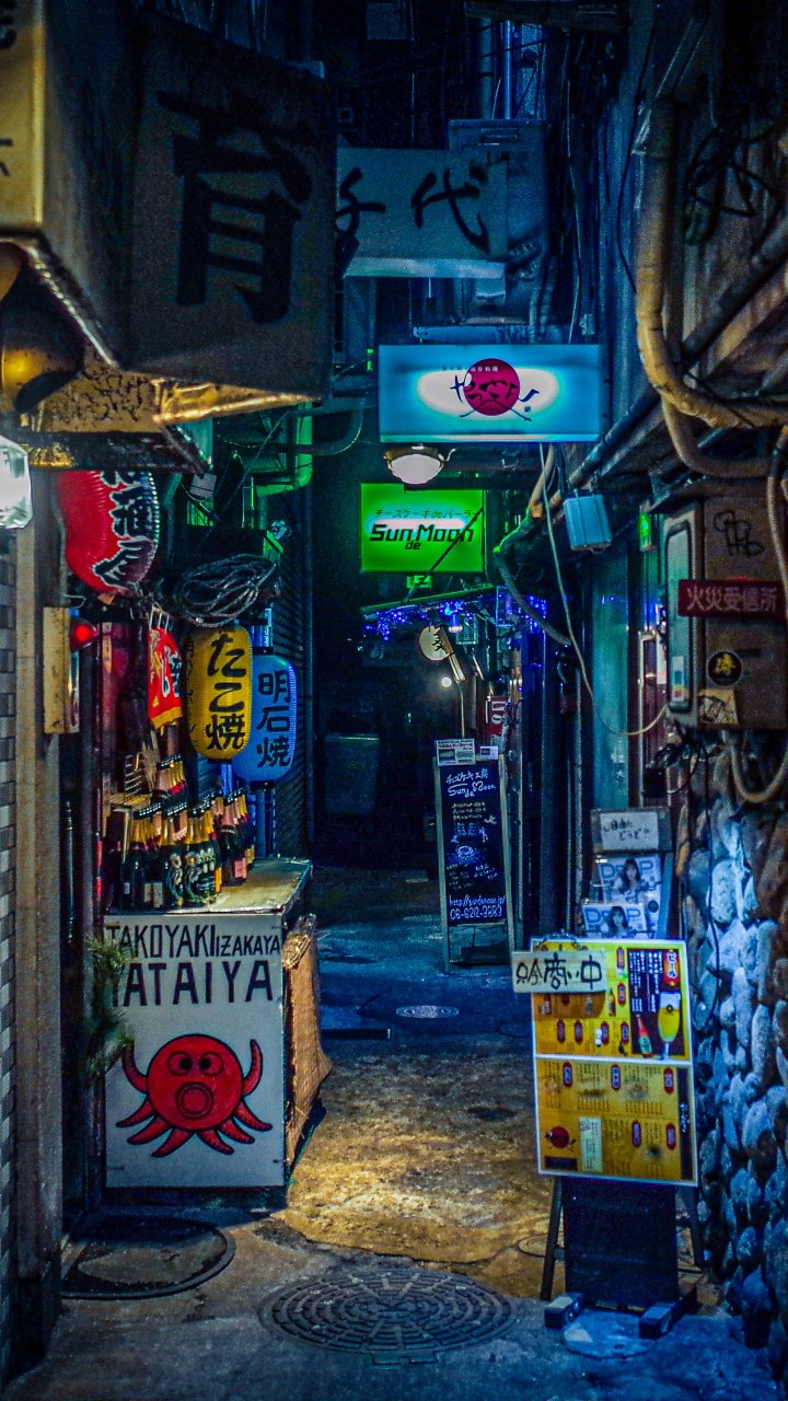 Wallpaper: night city, lane, Japan - 720x1280