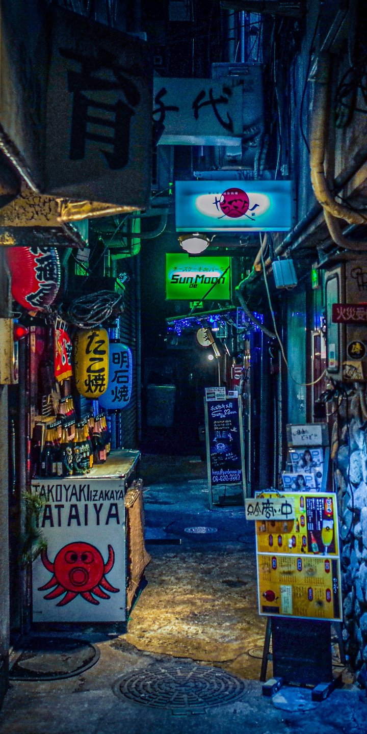 Wallpaper: night city, lane, Japan - 720x1440