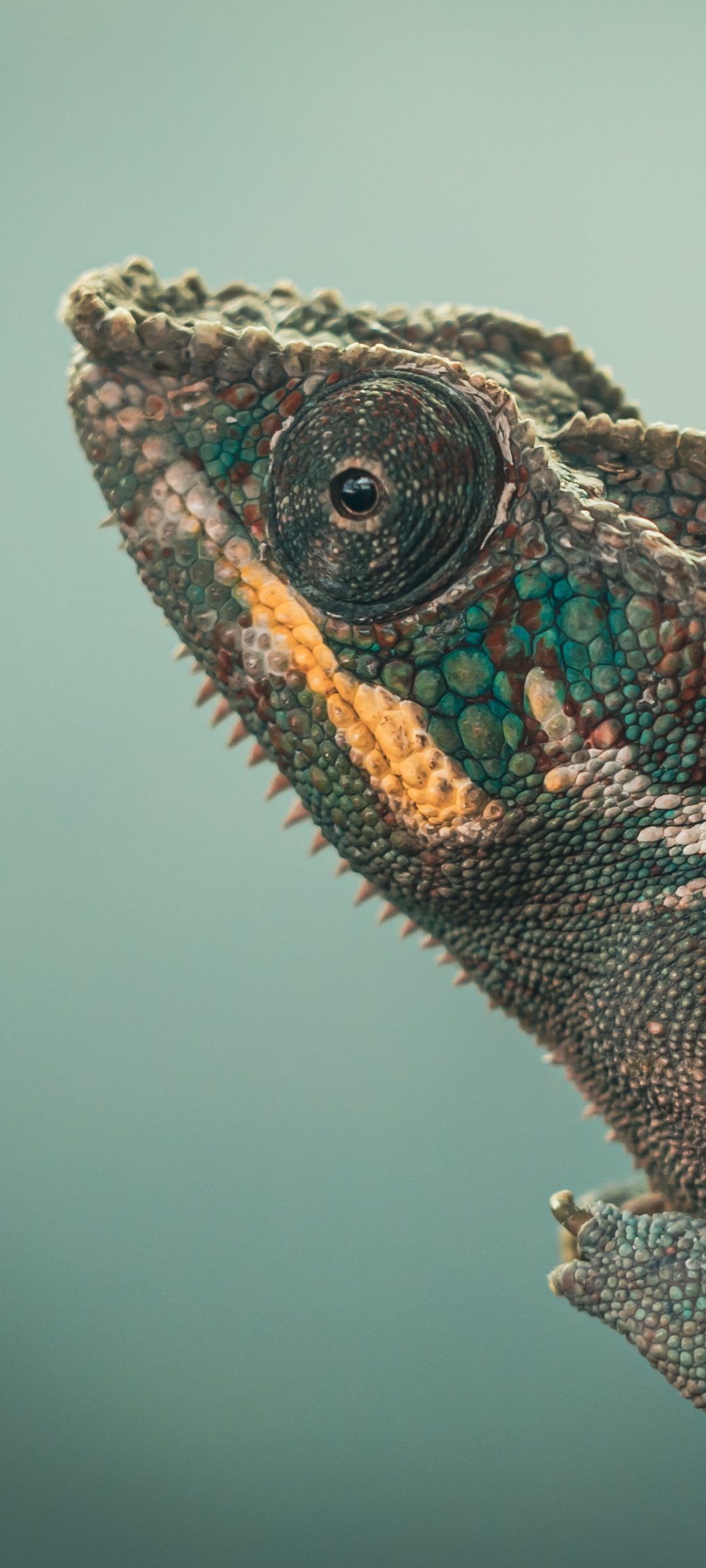 Wallpaper: chameleon, green, wild nature - 1080x2400