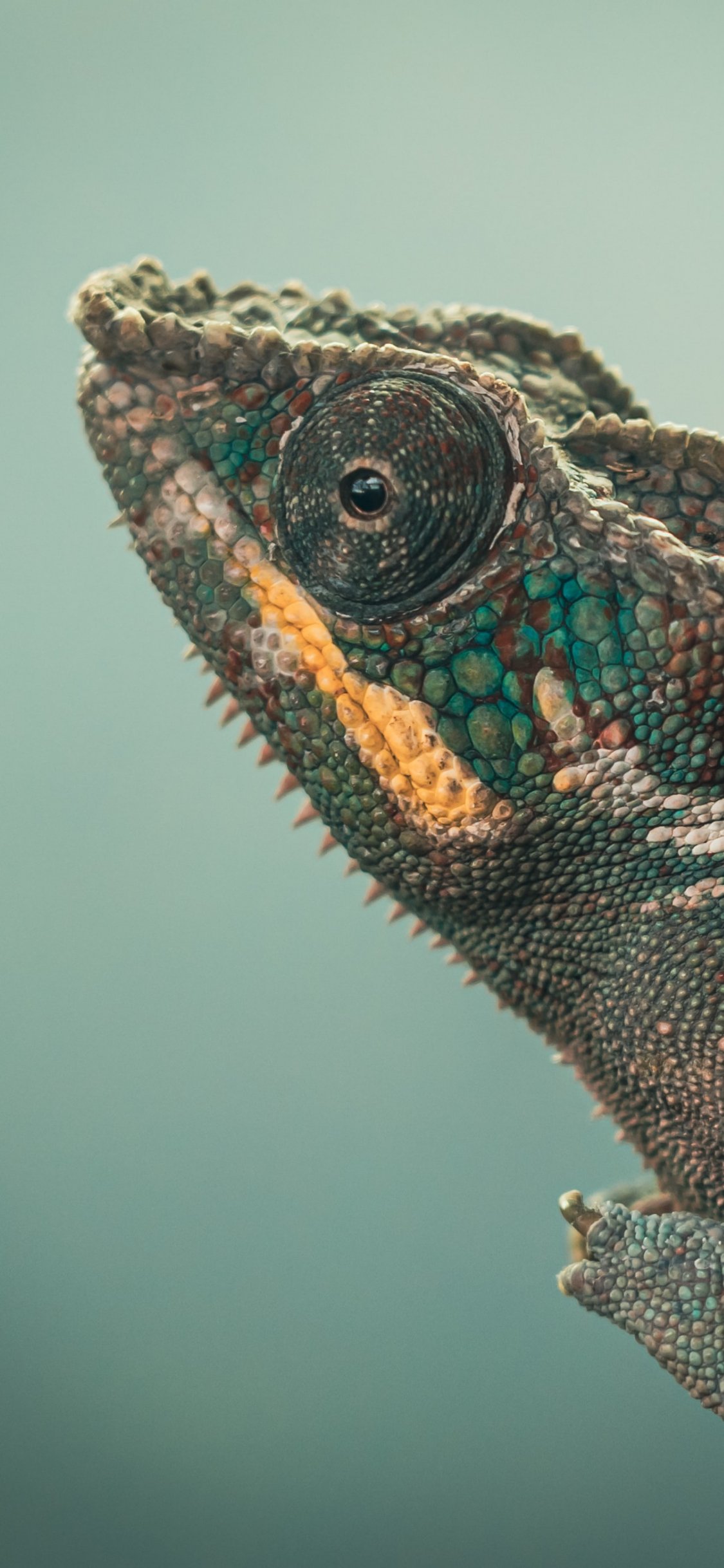 Wallpaper: chameleon, green, wild nature - 1125x2436