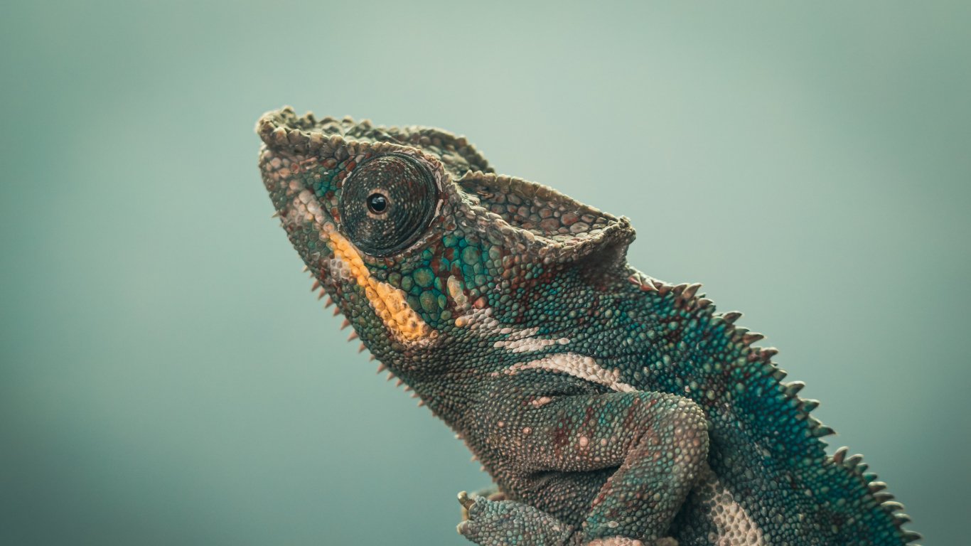 Wallpaper: chameleon, green, wild nature - 1366x768