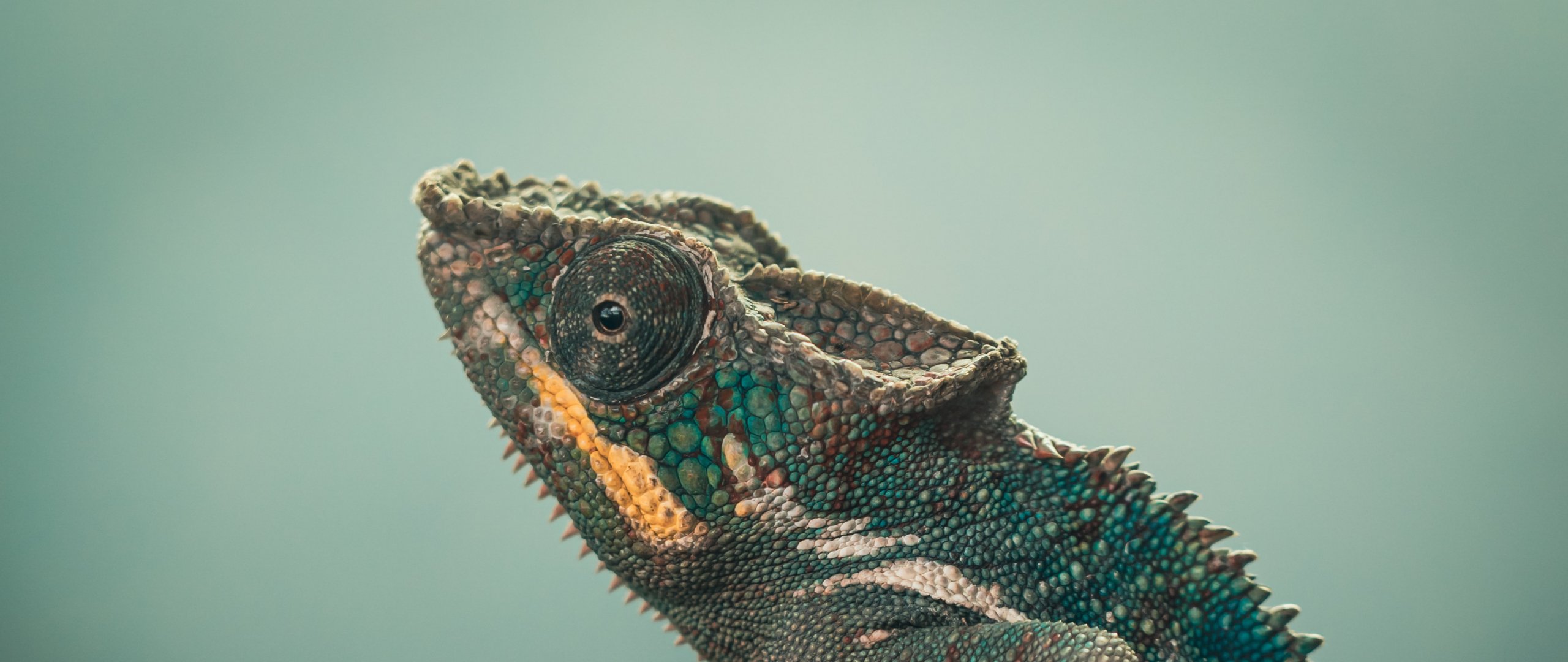 Wallpaper: chameleon, green, wild nature - 2560x1080