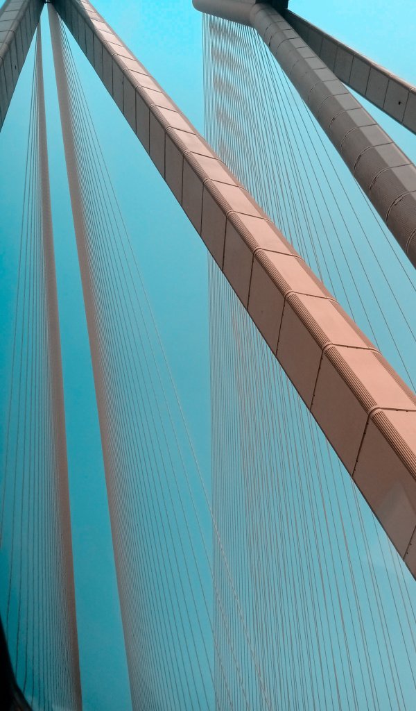 Wallpaper: suspension bridge, blue sky - 600x1024