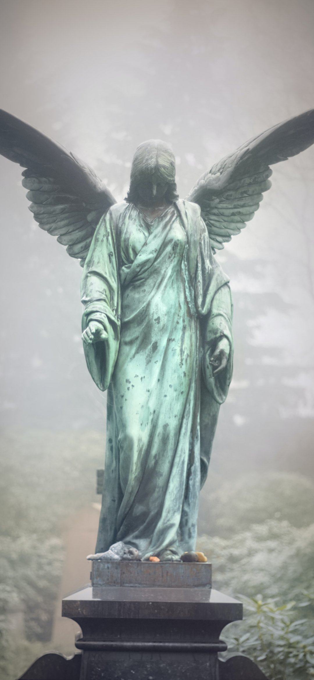 Wallpaper: statue, cemetery, angel - 1080x2340