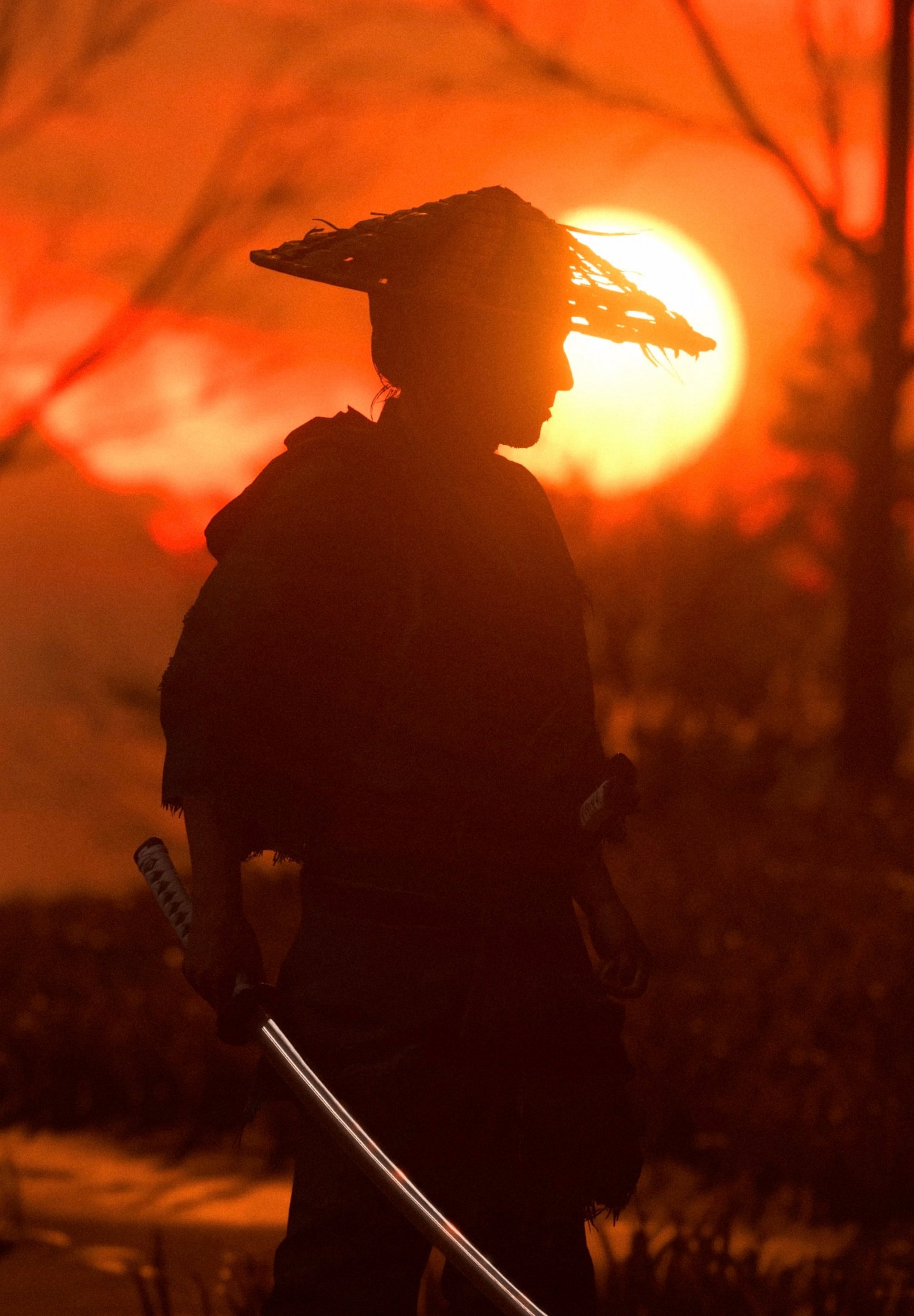 Wallpaper: samurai, silhouette, sunlight - 1640x2360