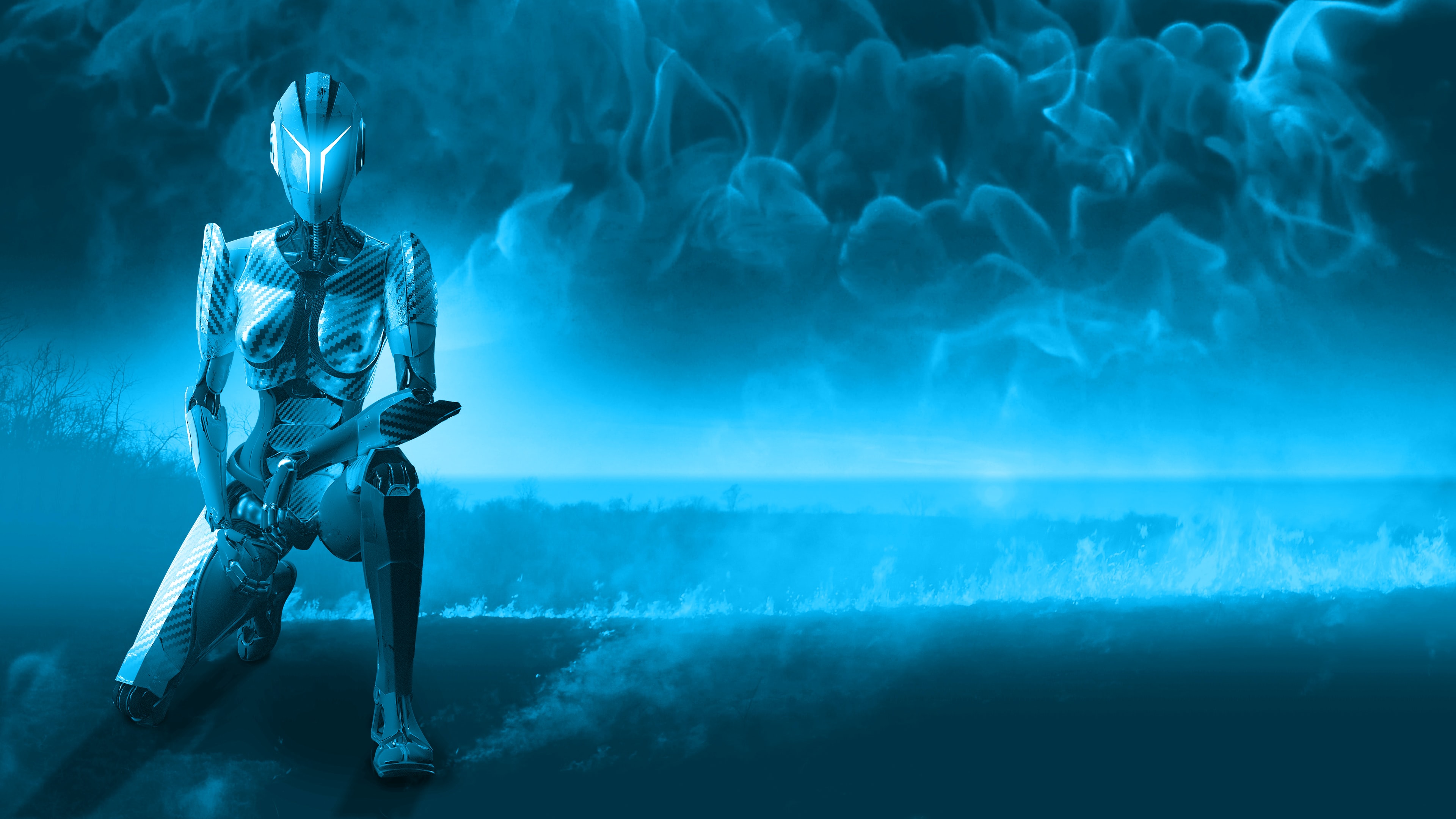 Wallpaper: 3D, robot, blue - 3840x2160