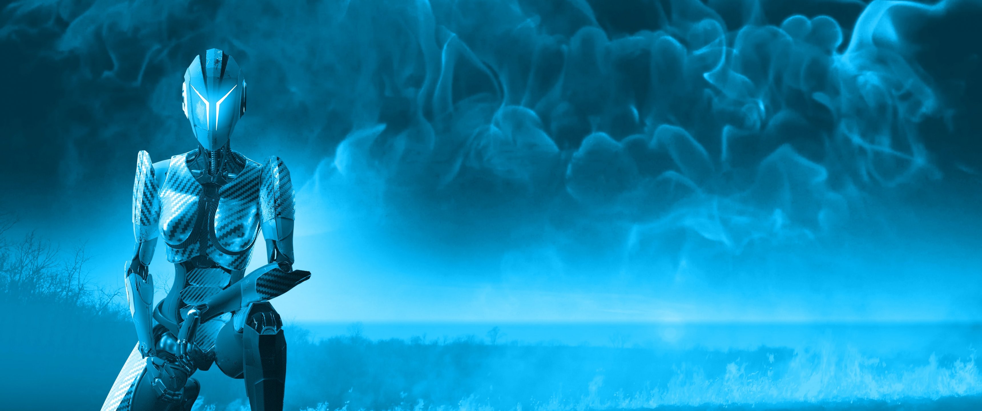 Wallpaper: 3D, robot, blue - 3440x1440
