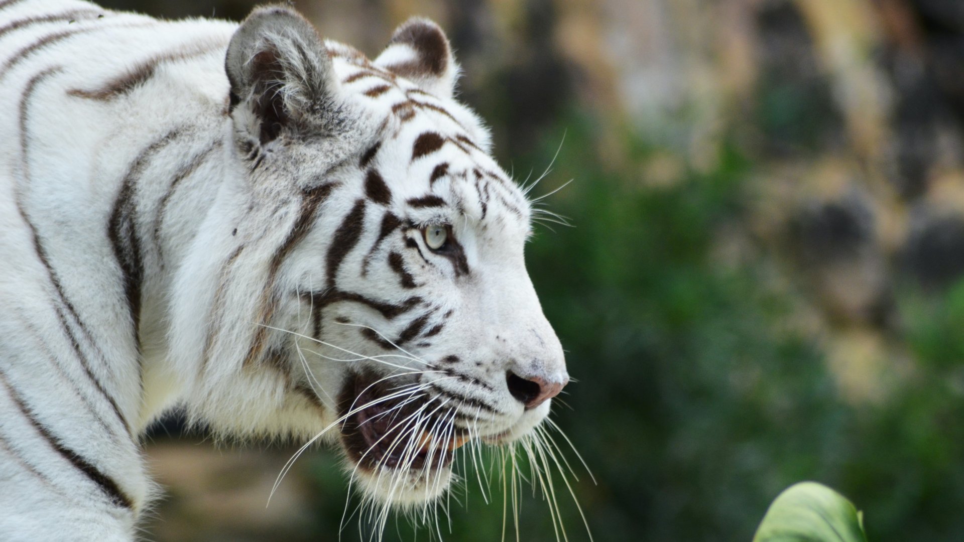 Wallpaper: white tiger, predator, wild nature - 1920x1080