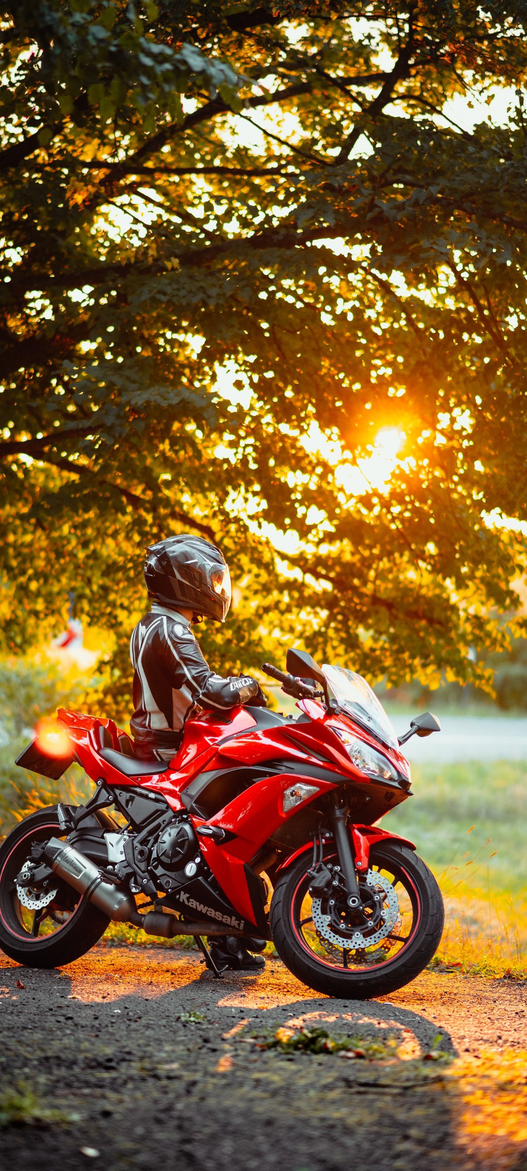 Wallpaper: biker, sunlight - 1080x2400