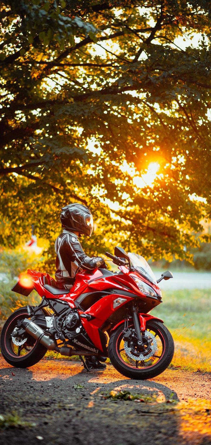 Wallpaper: biker, sunlight - 720x1520