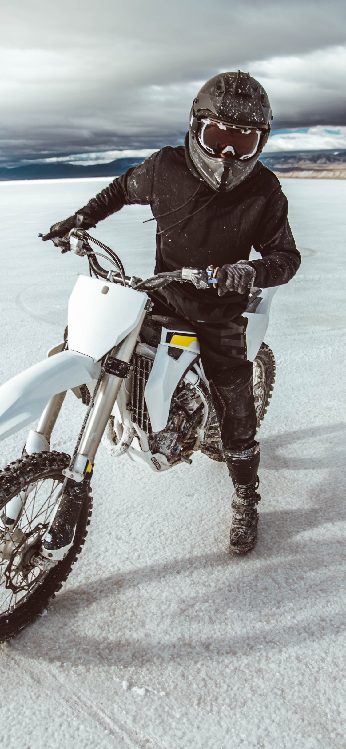 Wallpaper: motorcyclist, salt marshes - 1125x2436