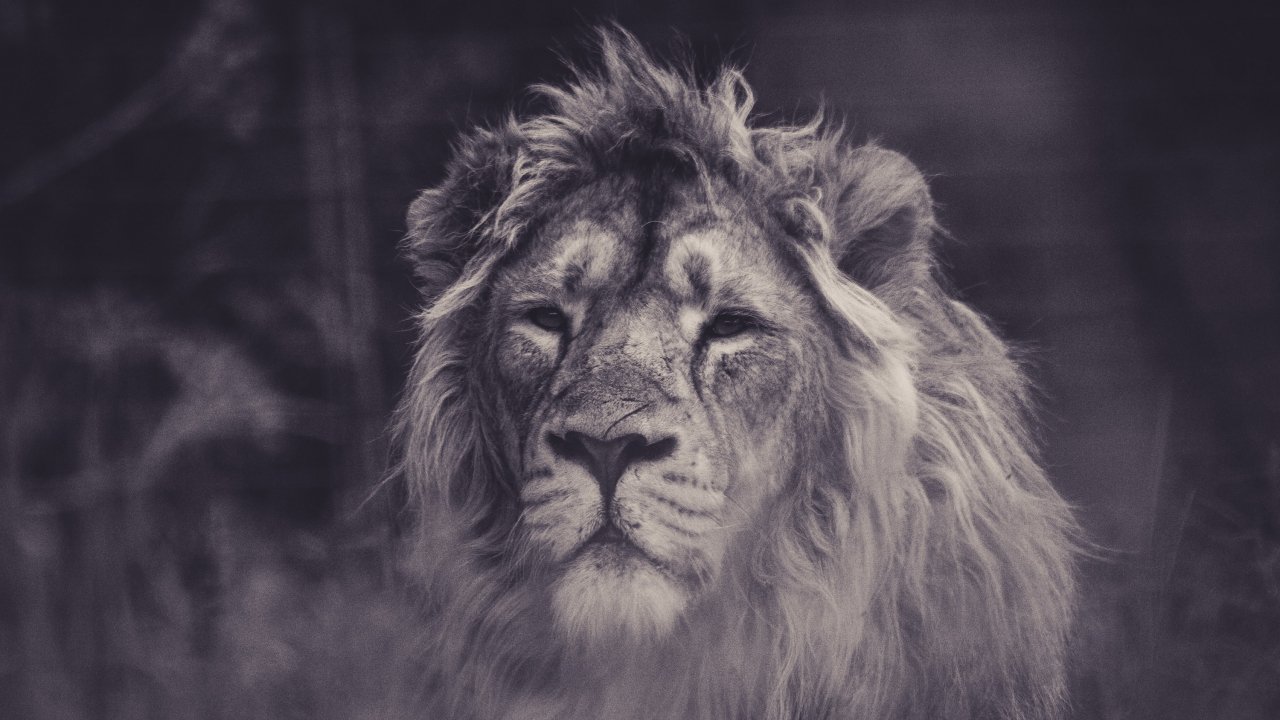 Wallpaper: lion, mane, black and white - 1280x720