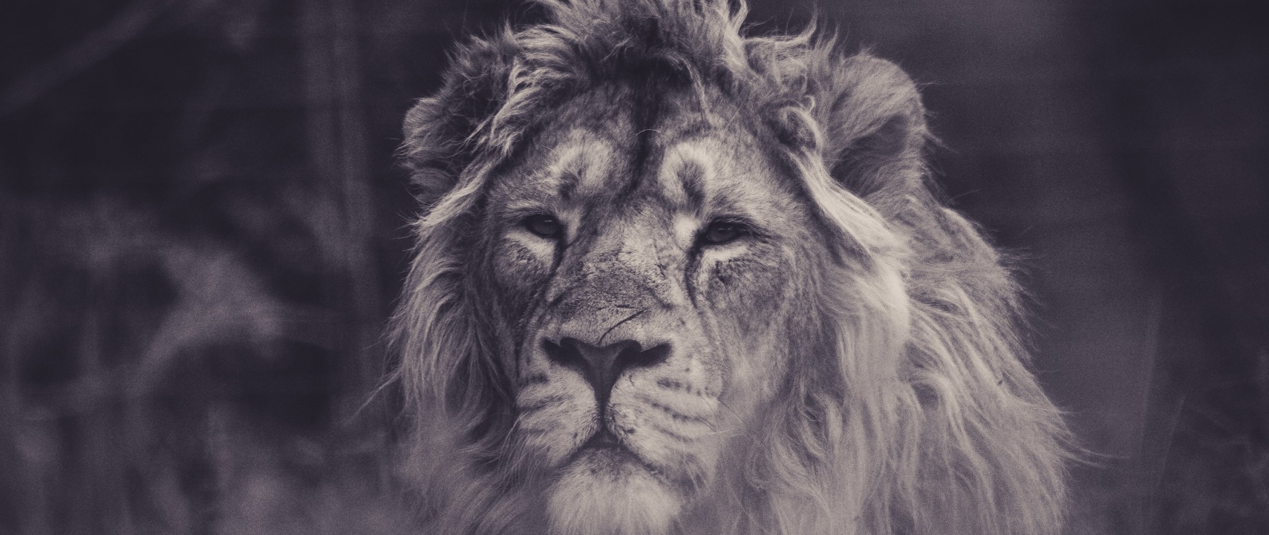 Wallpaper: lion, mane, black and white - 2560x1080